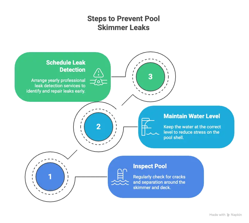 Preventative pool care is the best way to avoid repeating skimmer leak issues: